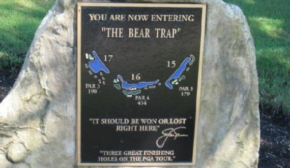 Los hoyos 15, 16 y 17 que forman el Bear Trap del PGA National de Palm Beach forman la secuencia más terrorífica de todo el circuito. Dos pares 3 largos y un par 4 rodeados de agua y todo tipo de peligros que llevan a perder los nervios al profesional más experimentado.