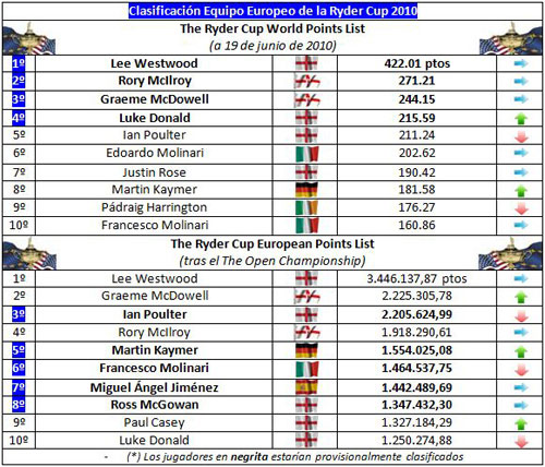 Un simple vistazo a la clasificación final de la centésimo trigésimo novena edición del Abierto Británico y descubrimos a cuatro europeos en el top 5, seis en el top 10, y trece en el top 25. Y claro, esto se ha traducido en importantes cambios, y estrecheces, en las dos clasificaciones para el equipo europeo de la Ryder Cup.