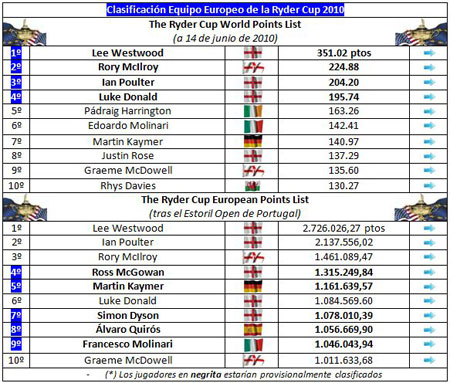 Con este triunfo, Lee Westwood es el primer golfista que supera la barrera de los trescientos cincuenta puntos en la RCWPL, donde consolida su liderato, en un equipo europeo que permanece invariable de cara al segundo grande de la temporada, el US Open de Golf, que arranca este jueves 17 de junio de 2010.