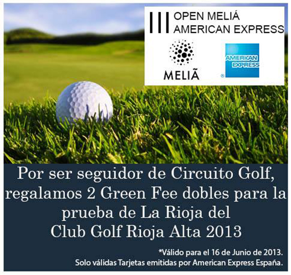 Además, aquellos que sean titulares de una tarjeta de American Express podrán aprovecharse de una fantástica promoción para participar gratis en este torneo en La Rioja. Basta con que sigan en Facebook o en Twitter a Circuito Golf, la comunidad de golf de American Express, y les digan qué les gusta más de Rioja Alta. Podrán aspirar a dos green fees dobles para jugar el campeonato.