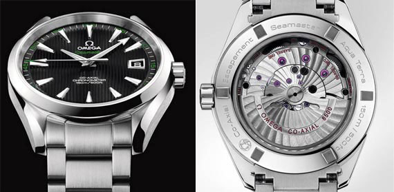 El reloj cuenta con una caja de acero cepillado y pulido de 41 mm, estanca hasta los 150 m, que alberga el calibre manufactura Omega 8500 con el escape coaxial marca de la casa que promete alargar la duración de la máquina y reducir el número de revisiones y que permite ajustar la hora independientemente del resto de agujas. La esfera presenta la característica estriación longitudinal tipo Riva propia de los Aqua Terra y lleva índices aplicados en oro blanco de 18 quilates. La edición especial cuenta con detalles en verde, como son los números de los segundos, el nombre Seamaster y la punta del segundero.