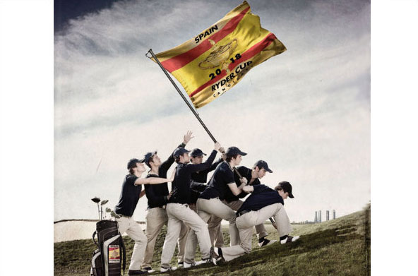 Con esta idea, Carlo Cutropía y Ana Rivera de GFC Golf & Business (empresa que preside el campeón madrileño Gonzalo Fernández-Castaño), fueron a la agencia de publicidad Euro RSCG en busca de un cartel con el que, además de publicitar el Madrid Masters, pudieran mostrar esa ilusión compartida por lograr la Ryder Cup. Los creativos de la agencia decidieron utilizar la famosa foto “Izando la bandera en Iwo Jima”, tomada por Joe Rosenthal en 1945, para simbolizar el espíritu de lucha de la Candidatura.