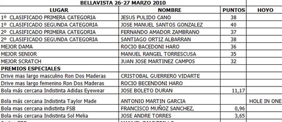 Este fin de semana, y con una asistencia de 230 jugadores, se ha celebrado el viernes 26 y sábado 27 la quinta prueba del Circuito Premium 2010 Gambito Golf en el campo de Bellavista, Huelva.