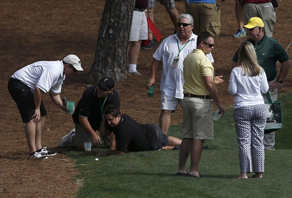 Durante su primera vuelta de prácticas en el Augusta National, Olazábal pegó un golpe de salida desviado que impactó en la cabeza de un aficionado, provocándole una contundente herida. Inmediatamente, el español fue a disculparse por el incidente y le firmó un guante, como mandan las costumbres entre los profesionales. No ha sido el único incidente en los primeros compases del Masters 2013. Darren Clarke se ha visto obligado por una lesión a retirarse, con lo que el torneo pierde a un ganador de un major entre sus participantes.