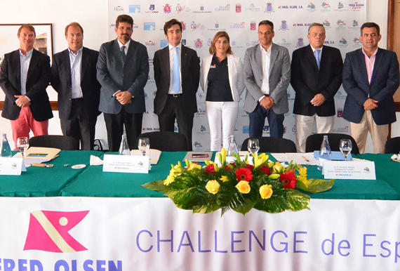 Fernando Méndez, Consejero de Turismo del Cabildo de La Gomera; María Méndez, Directora de Promotur; Sebastián Cerezo, Director General de Fred. Olsen S.A. y Álvaro Alonso Lamberti, VicePresidente de la Federación Canaria de Golf, han presidido la presentación oficial del Fred. Olsen Challenge de España junto con Primos Pusnik, Director de Tecina Golf y Activos del Área de la Gomera; José Mª Zamora, Director del Challenge Tour y Javier Gervás, socio de MatchGolf.