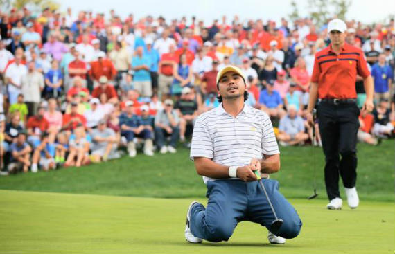 En una desordenada edición del torneo por culpa de la inclemencia meteorológica, el sábado se planteaba como un largo día. Primero habría que acabar los cuatro partidos de la segunda jornada y luego disputar dos sesiones de cinco partidos, primero a fourballs y posteriormente a foursome. Y a nadie se le hizo tan largo como a Nick Price. A pesar de ir por delante en todo momento en el marcador global, daba la sensación de que los americanos se encontraban algo desconcertados ante el aguante internacional. Tras dos días de resistencia, éstos acumulaban méritos que invitaban a pensar que ésta podría ser la edición de su segunda victoria, la primera en suelo americano, pero fue comenzar los fourballs del sábado y la esperanza, como Muirfield poco a poco, se aguaba.