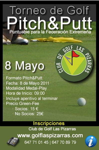 El Club de Golf Las Pizarras celebrará una «mini feria del turismo local» con motivo del torneo Pitch&Putt puntuable para la Federación Extremeña el próximo 8 de Mayo. Se trata de un prueba en donde, además de jugar al golf, tendrá lugar una exposición de productos, empresas y servicios de la zona del norte de Extremadura.