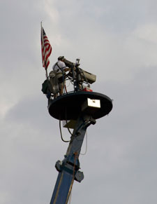 • Vértigo daba mirar a los operadores de cámara que se jugaban el tipo a más de 60 metros de altura en las plataformas de las grúas repartidas por todo Congressional Country Club (con la omnipresente bandera estadounidense). Además de ser especialmente vulnerables a los efectos del viento, había que verles maniobrar cuando se comunicaba la alerta de tormenta eléctrica.