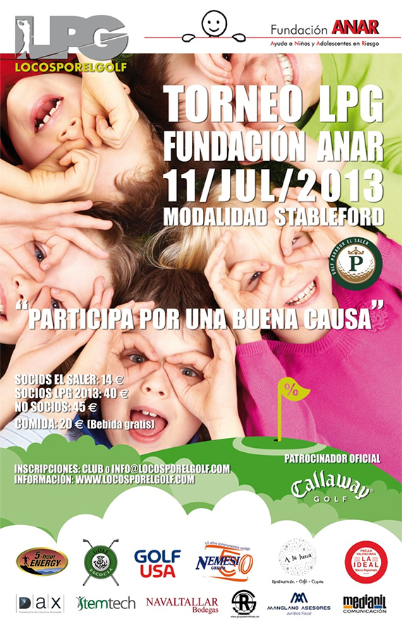 El próximo jueves 11 de julio se celebrará el tradicional Torneo LPG Fundación Anar en El Saler. La prueba, promovida por Locos Por El Golf, tiene un carácter benéfico y los green fees y papeletas que se venderán durante el evento irán a destinados a ayudar a niños y adolescentes.