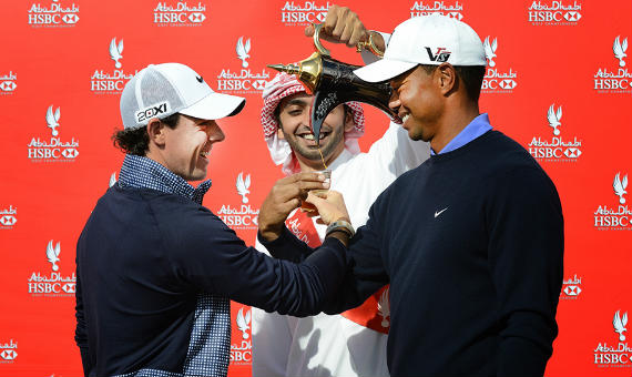 Tres de los cinco mejores jugadores del Ranking Mundial, 2,7 millones de dólares en premios y un recorrido preparado a conciencia para el Abu Dhabi HSBC Golf Champions. El Circuito Europeo comienza una gira por el desierto, pero lo que genera verdadera expectación es que Tiger Woods y Rory McIlroy den el pistoletazo de salida a una nueva temporada jugando en el mismo partido, en lo que supone una especie de adelanto de lo que deberíamos esperar del número uno y dos del mundo a lo largo de 2013. Los han citado, como pidiéndoles una conversación a base de birdies, y las expectativas están por las nubes. No parece importar que Jason Dufner también participe, o que Justin Rose, Padraig Harrington, Martin Kaymer, Francesco Molinari o Branden Grace hayan mostrado un gran nivel durante sus últimas apariciones. Abu Dhabi, al igual que todo el mundo del golf, clama por ver en el campo lo mismo que en el último anuncio de Nike.