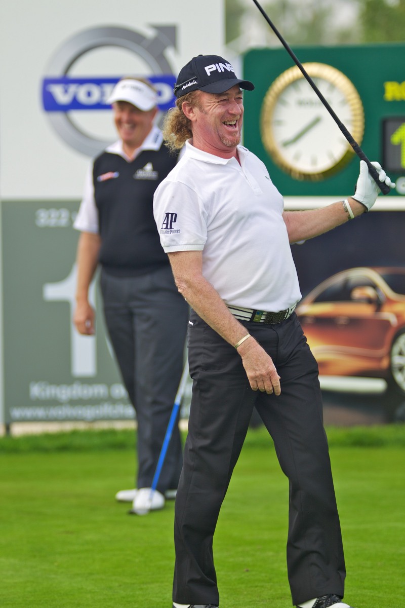 Miguel Ángel: “Parece mentira que después de tantos años en el Tour todavía tenga que soportar que mis compañeros se rían de mí. Como ha explicado Darren, iba jugando muy bien y dejándome muchas oportunidades de birdie, aunque algunos putts de un metro no han querido entrar porque ¡se me movía el hoyo! Me desesperé, iba un poco calentito e intenté guardar el putter en la bolsa lanzándolo de tal manera… que se ha partido en dos”.