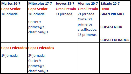 – Copa Senior para jugadores veteranos que no se inscriban al Gran Premio
