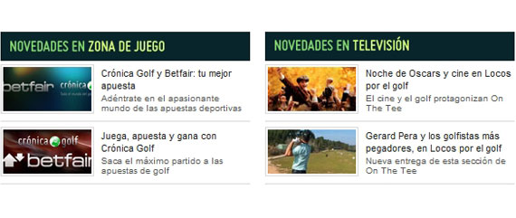 En primer lugar, veréis que han aparecido dos secciones nuevas en la portada de la web y que hemos incluido a continuación de la pastilla de noticias. En Zona de juego ubicaremos todos aquellos artículos relacionados con las apuestas deportivas y las ligas fantásticas de golf. Cada semana publicaremos un exhaustivo artículo analizando las posibilidades de los participantes en los torneos de los principales circuitos (European Tour y PGA Tour, sobre todo) y os informaremos de las cotizaciones más interesantes para sacar un buen pellizco en cada torneo.