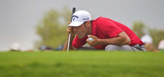 Álvaro Quirós también se ha mantenido por delante durante toda la vuelta, en gran medida, por los errores de Casey que comenzaba su recorrido con dos bogeys en los dos primeros hoyos. En el tres, los dos firmaban birdies, y en el cuatro y en el cinco, fallaban consecutivamente el español y el inglés para mantener una distancia de dos a favor del gaditano.