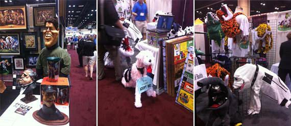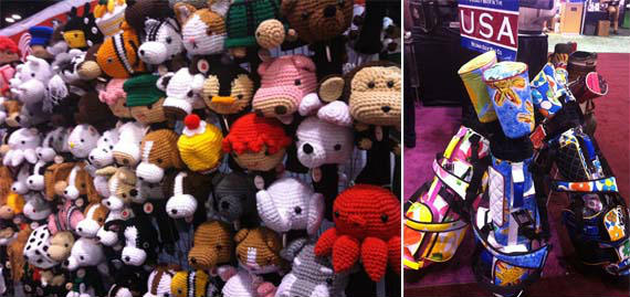 Paseando por la feria, me encontré con un stand dedicado en exclusiva a caricaturas, figuras de jugadores y todo tipo de temas relacionados con el golf, mientras que avanzando un poco por el mismo pasillo nos encontramos una opción para hacer que nuestra bolsa sea diferente a la de cualquier otro jugador (no sé si para bien). Se trata de un cubrebolsas con formas de bichejos que le dan un aire divertido a la bolsa del que se atreva a llevarlo. No es mi caso, desde luego.