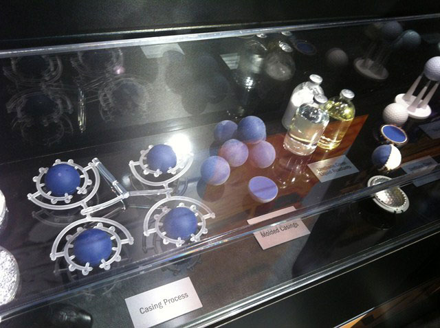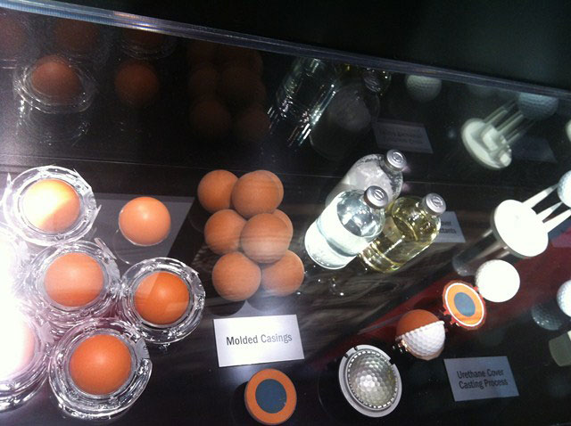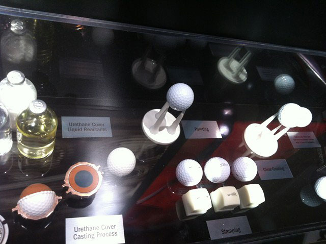 El stand de Titleist fue de los que más me gustó. Pude ver el nuevo modelo de bola Titleist, la Velocity, y una de las cosas que más me gustó fue la parte dedicada a las distintas fases de la fabricación de las bolas, dónde se podían ver los materiales utilizados en su construcción y los pasos que hay que seguir. Realmente interesante.