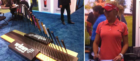 Por descontado, también estaban las marcas clásicas, como Golf Pride y Winn, y en el stand de esta última marca había un cola importante, cosa que me llamó la atención. Seguí la fila para encontrar el motivo de la aglomeración y me encontré a la mismísima Natalie Gulbis firmando autógrafos, muy “maja” ella.