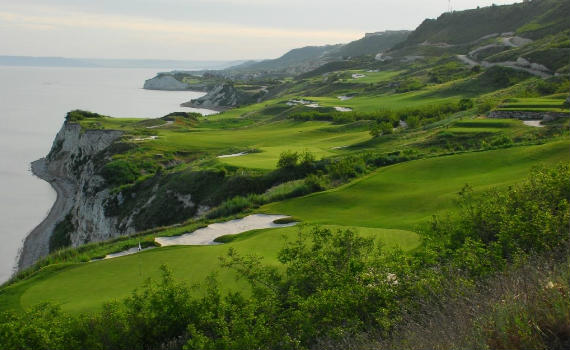 Un par 3 de 211 metros cuesta abajo, con un desnivel de 40 metros, para afrontar después un drive desde un tee de salida en isla, en el que hay que atravesar el mar Negro. Es lo que se van a encontrar los participantes del Volvo World Match Play en Thracian Cliffs, un diseño de Gary Player en Bulgaria. “Van a ver uno de los campos más bonitos del planeta”, declaró esta semana el sudafricano. “No sé en cuántos recorridos puedes ver el mar desde cada hoyo y jugar a través de los acantilados. No van a encontrar uno como éste en ningún otro sitio”.