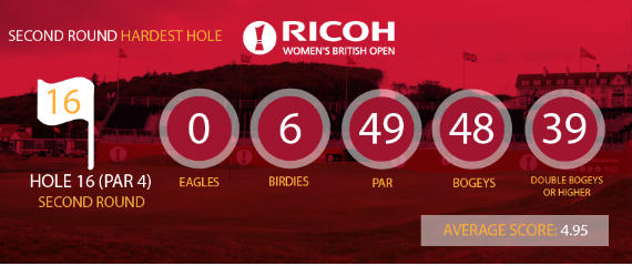 • Aunque todo el recorrido repartió estopa entre las participantes (el 14 se ensañó especialmente con Beatriz Recari y Carlota Ciganda, por ejemplo), el más difícil del viernes fue el par 4 del hoyo 16. Adjuntamos un resumen de sus estadísticas.