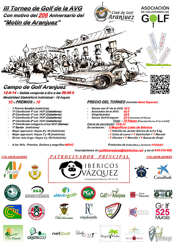 La Asociación de Voluntarios de Golf celebra su tercer torneo y de nuevo se desplaza hasta Aranjuez, esta vez con el motivo del 206º aniversario del “motín de Aranjuez”. Como en otras ocasiones, el Club de Golf Aranjuez acogerá el próximo 12 de septiembre el evento que finalizará con la entrega de premios y una fabulosa comida en la casa club del propio club.