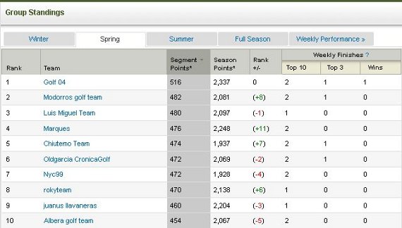 En la Liga de Crónica Golf, una semana más, continúa como líder indiscutible “Golf 04” que parece haberle cogido el tranquillo a esto y también parece dispuesto a no soltarlo. También, como en los torneos de nivel, tenemos nuestra remontada de la semana protagonizada por “Modorros golf team” que se coloca segundo en el ranking semanal.