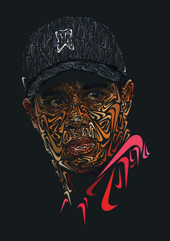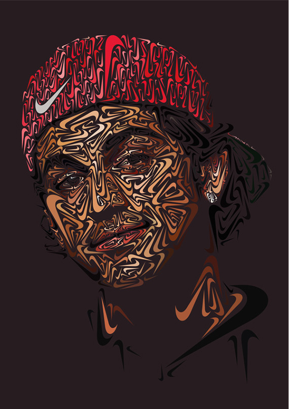 El trabajo es fantástico y hay que irse al detalle para ver que, efectivamente, el cuerpo del dibujo lo componen en exclusiva decenas de logos de Nike. El retrato forma parte de la serie ‘The Nike Portraits’ en la que el artista ha incluido ilustraciones similares con Lebron James (Baloncesto) y Paul Rodríguez (skateboard). Aquí os dejamos los tres ejemplos de los ‘Nike Protraits’, pero podéis ver más ejemplos del trabajo de Gellengberg en este link.