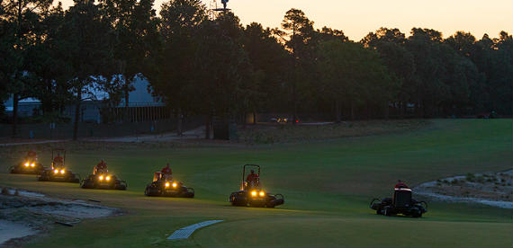 Con respecto a la cancha de prácticas, Pinehurst tiene una de los mejores que conozco. Se la denomina «Maniac Hill» (“la colina del entusiasta”, en una traducción benévola), pero en esta edición del US Open se utiliza para las carpas de hospitalidad y merchandising, mientras que la cancha de prácticas habilitada para el torneo son las calles de los hoyos 1 de los campos 1 y 3 del resort. Esta zona de prácticas provisional está muy bien porque tiene árboles en medio y recuerda un poco a la mejor cancha de prácticas que conozco, el «Tournament Range» de Augusta National Golf Club. He felicitado personalmente a Bob Farren y a Mike Davis, de la USGA, porque la idea es mucho mejor que en ediciones anteriores (1999 y 2005), cuando las carpas de hospitalidad y merchandising se instalaron en las calles de los hoyos 1 de los campos 1 y 3, que quedaron en muy mal estado para su reapertura. De nuevo, una muy buena idea que reduce los gastos ocasionados por la organización del campeonato.