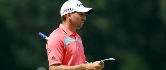 Las cámaras de televisión, recogiendo el vuelo de la bola desde arriba, no alcanzaban a ver el green cuando la bola de Sergio aterrizaba en el rough. Un rough que segundos después se vio que estaba a más de 40 metros de green desde el cual no consiguió hacer approach y putt. Subsanó el error con dos birdies más que estuvieron cerca de ser tres en el green del 7, último par 5 al que se enfrentaba. Por muy poco, su hierro 5 de segundo golpe acababa en el bunker y una buena sacada le daba una opción de birdie de menos de tres metros, pero el putt no entró. Tras salvar un buen par en el par 3 del hoyo 8, su salida en el 9 acababa en una parte del bunker con clara influencia del talud. Del obstáculo de calle se iba al de green, donde ejecutó una nueva sacada notable para acabar rematando un putt de par de tres metros.