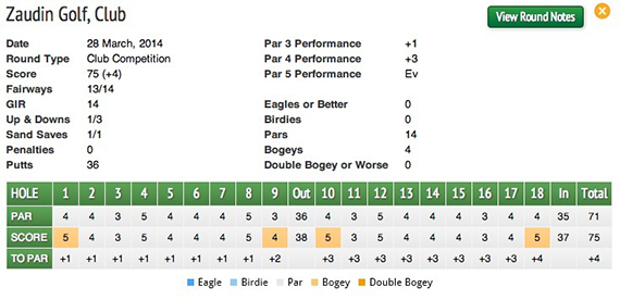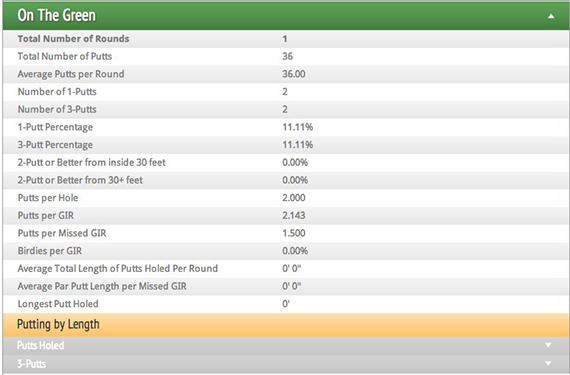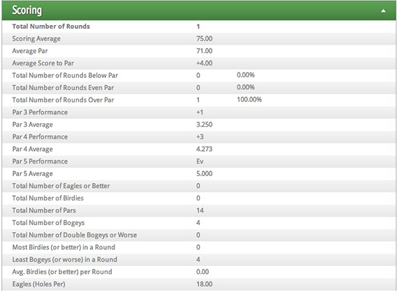Hay muchas aplicaciones para smartphones que siguen el rendimiento de un jugador a lo largo de una ronda. La mayoría de ellas están enfocadas a indicar la distancia a green por GPS. Basta con introducir el campo en el que se juega y el sistema nos va siguiendo por el recorrido. Varias de ellas cuentan ya con un pequeño análisis de los resultados en cada hoyo, es decir, nos va sumando los golpes, nos dice los puntos que hemos hecho e incluso nos calcula la media de impactos según sea par 3, par 4 o par 5. Y ya está. No sabemos nuestra media de distancia, los greenes en regulación o el número de putts que hemos necesitado para finalizar la ronda.