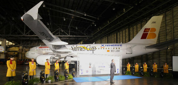 Los hangares del aeropuerto de Madrid Barajas han sido el original escenario escogido por la Salme’s Cup para presentar su quinta edición. Iberia Express, aerolínea oficial del torneo, aprovechó la ocasión para presentar el avión que transportará a los invitados de la Salme’s hasta Tenerife.