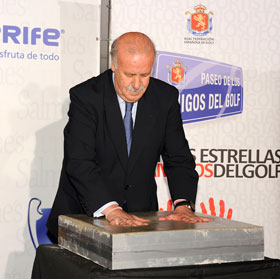 El seleccionador nacional aprovechó la ocasión para plasmar sus huellas para el Paseo de los Amigos del Golf, iniciativa apoyada por la Real Federación Española de Golf y que puede ser visitada en las instalaciones del Centro Nacional de Golf.