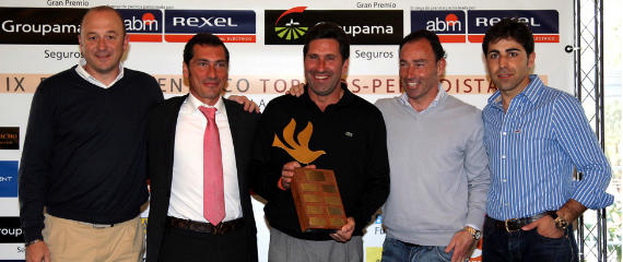 Nacho Aranda, Ángel Rodríguez, Pepín Liria y Javier Valverde flanquean al premiado de 2011, Chema Olazábal, en la última edición (foto Fernando Herranz)