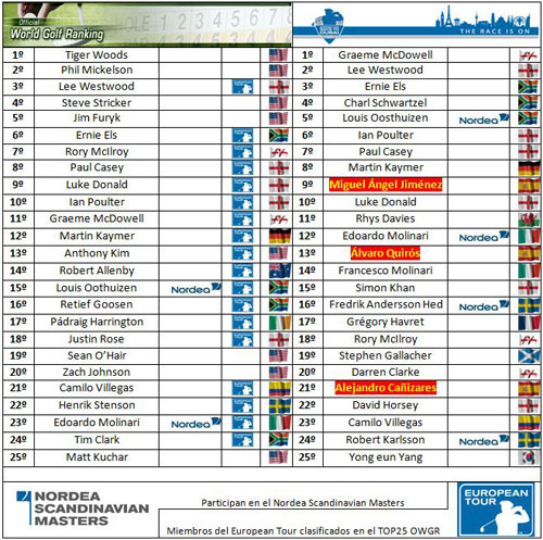 Enfrente tendrá a una nutrida representación nórdica, con las únicas ausencias de su jugador mejor clasificado en el ránking mundial, Henrik Stenson (22º, tercero la semana pasada en el Old Course), quien, no obstante, ha prometido volver en 2011, y disputarlo por tercera vez en seis años; y de los suecos afincados en el PGA Tour Fredrik Jacobson, Carl Pettersson, Daniel Chopra y Mathias Gronberg (estos tres últimos se hallan en Toronto para el RBC Canadian Open).