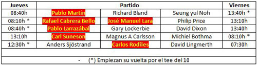 Con sus principales efectivos descansando tras el Abierto Británico, la armada española la formarán seis representantes, Pablo Larrazábal (ALSTOM Open de France de 2008), Pablo Martín (Alfred Dunhill Championship de 2010), Rafael Cabrera Bello (Austrian Golf Open de 2009), Carl Suneson… y Carlos Rodiles y José Manuel Lara, que han disputado las cinco últimas ediciones, con resultados dispares y algún que otro top 20.